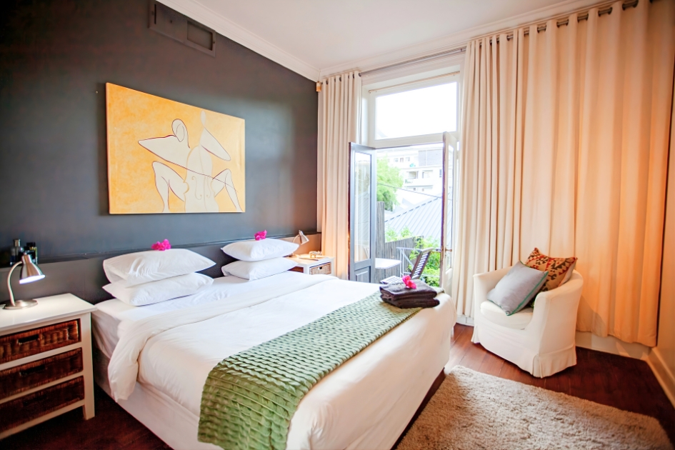 The Sanctuary is a serene escape with a private balcony overlooking Lion’s Head, and distant views of Signal Hill. This stunning sun-filled, en-suite room with king bed and 100% cotton percale linen offers refined comfort, elegant design, and breathtaking views for a truly tranquil Cape Town retreat.